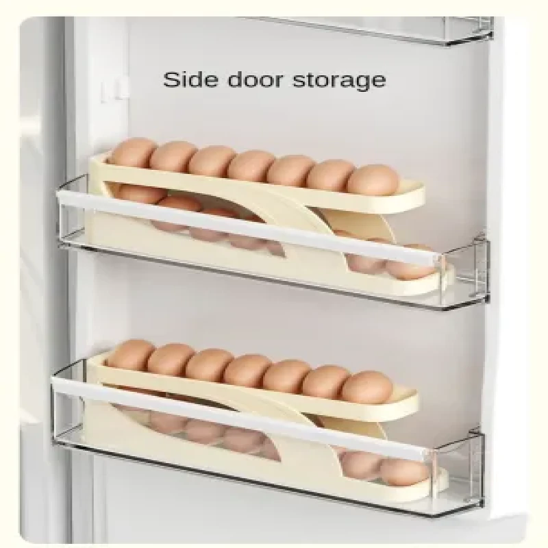 Features: Kitchen Automatic Scrolling Egg Rack Holder Storage Box Container Organizer Rolldown Refrigerator